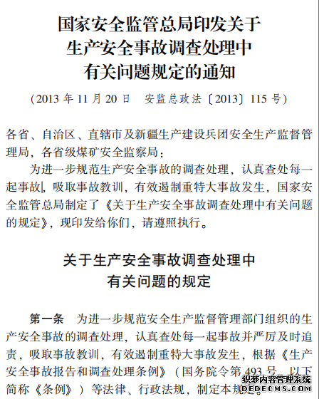 國家安全監(jiān)管總局印發(fā)關于 生產(chǎn)安全事故調(diào)查處
