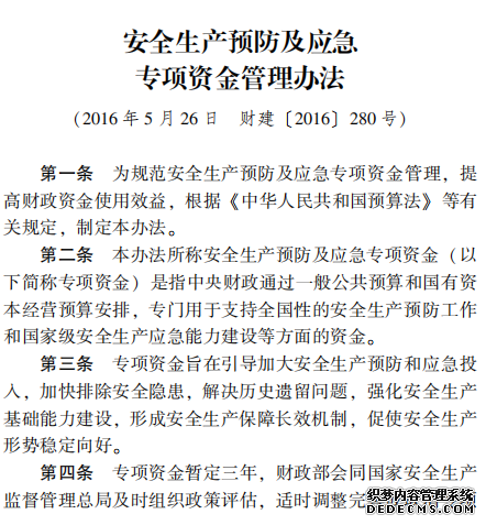 安全生產(chǎn)預防及應急 專項資金管理辦法