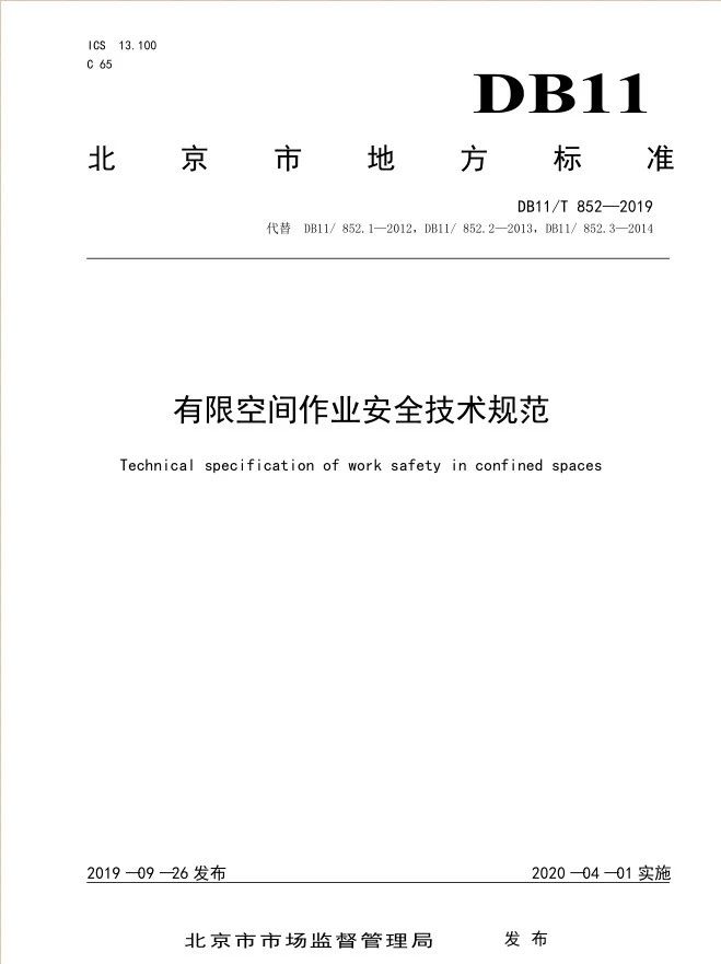 北京市 《有限空間作業(yè)安全技術(shù)規(guī)范》 DB11T852-2019