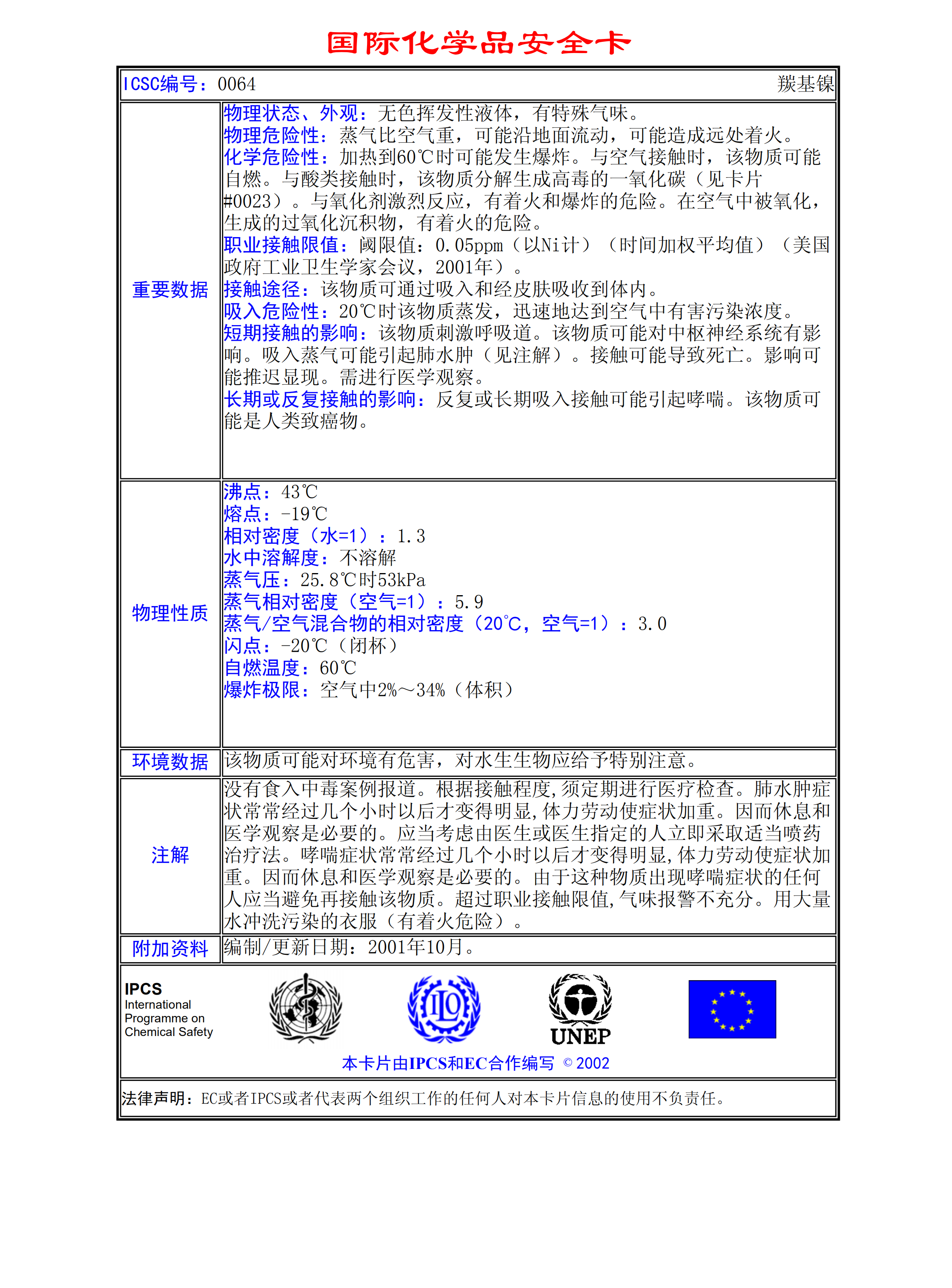 羰基鎳MSDS