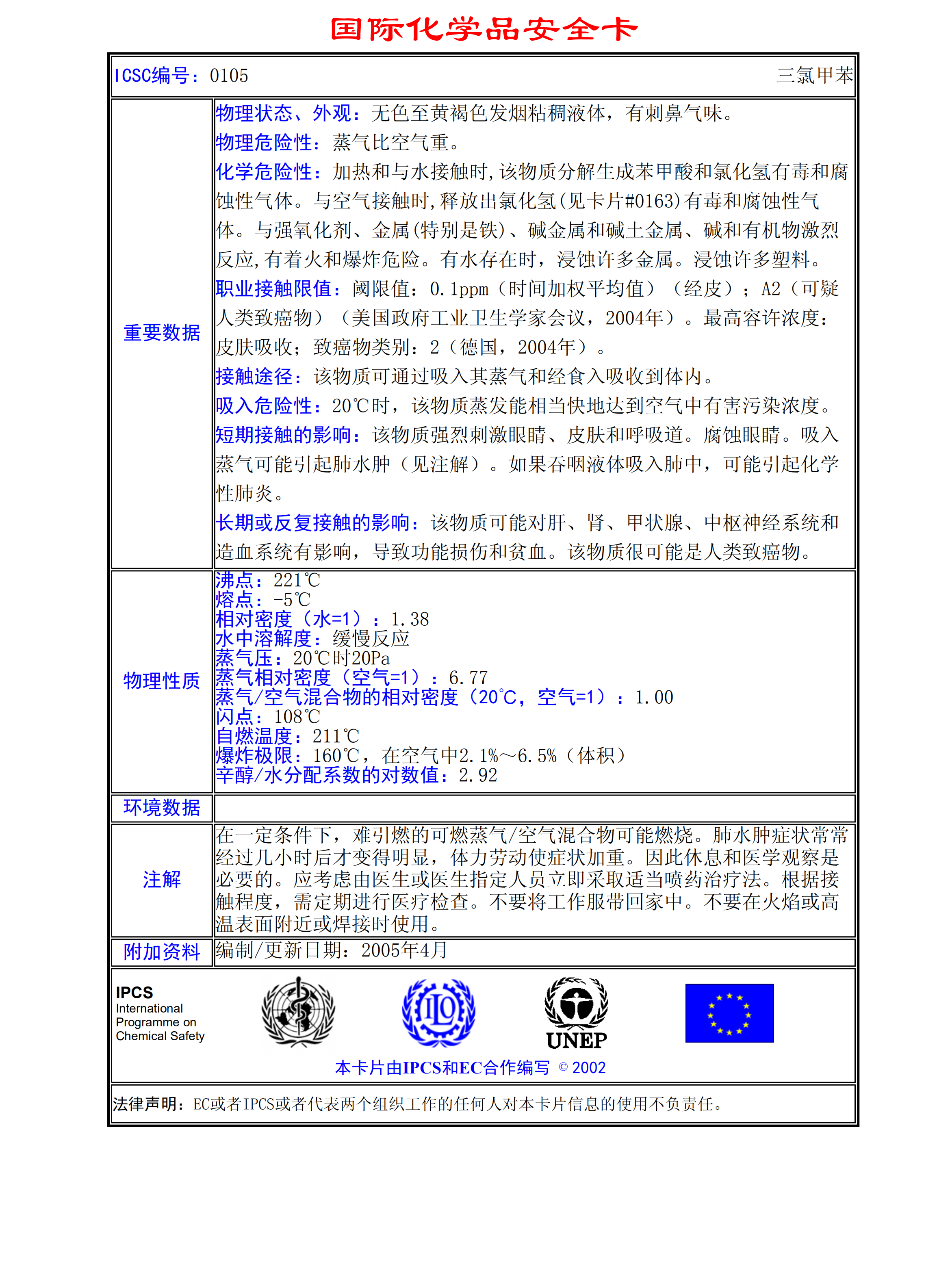 三氯甲苯MSDS