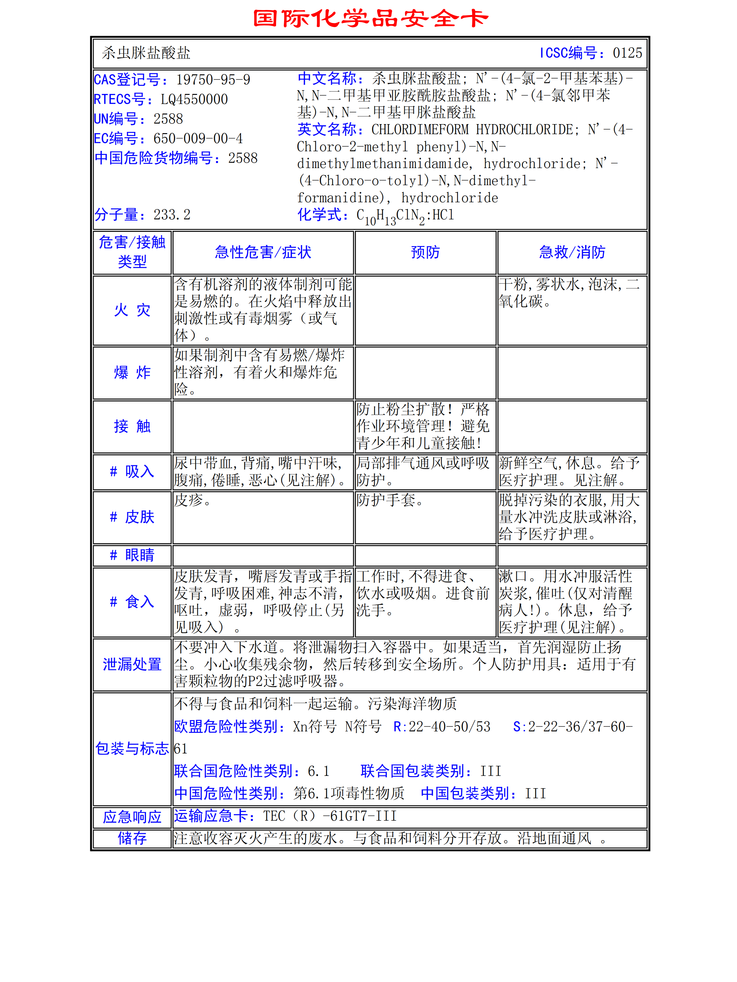 殺蟲(chóng)脒鹽酸鹽MSDS