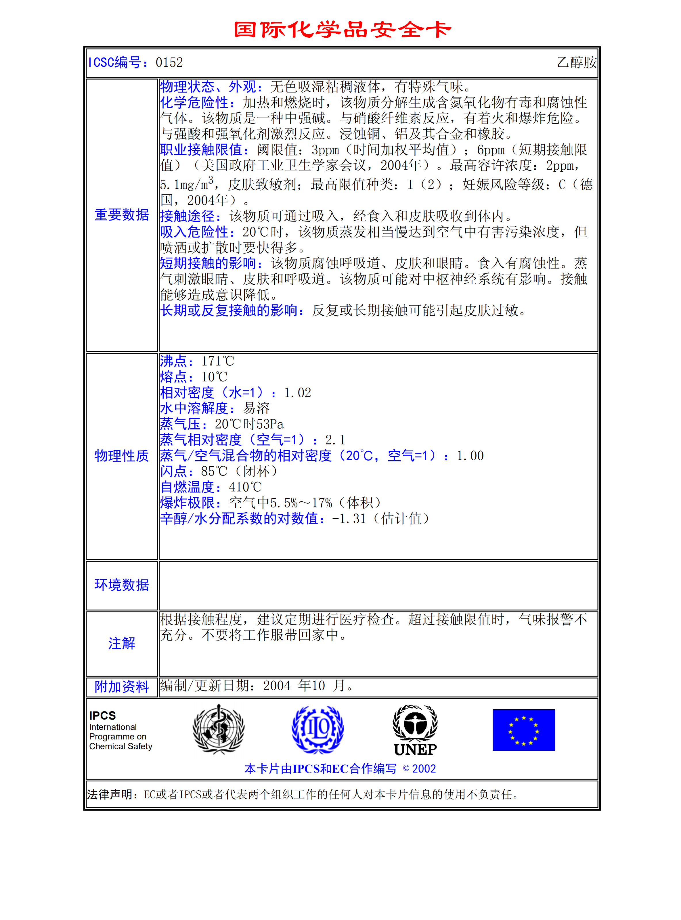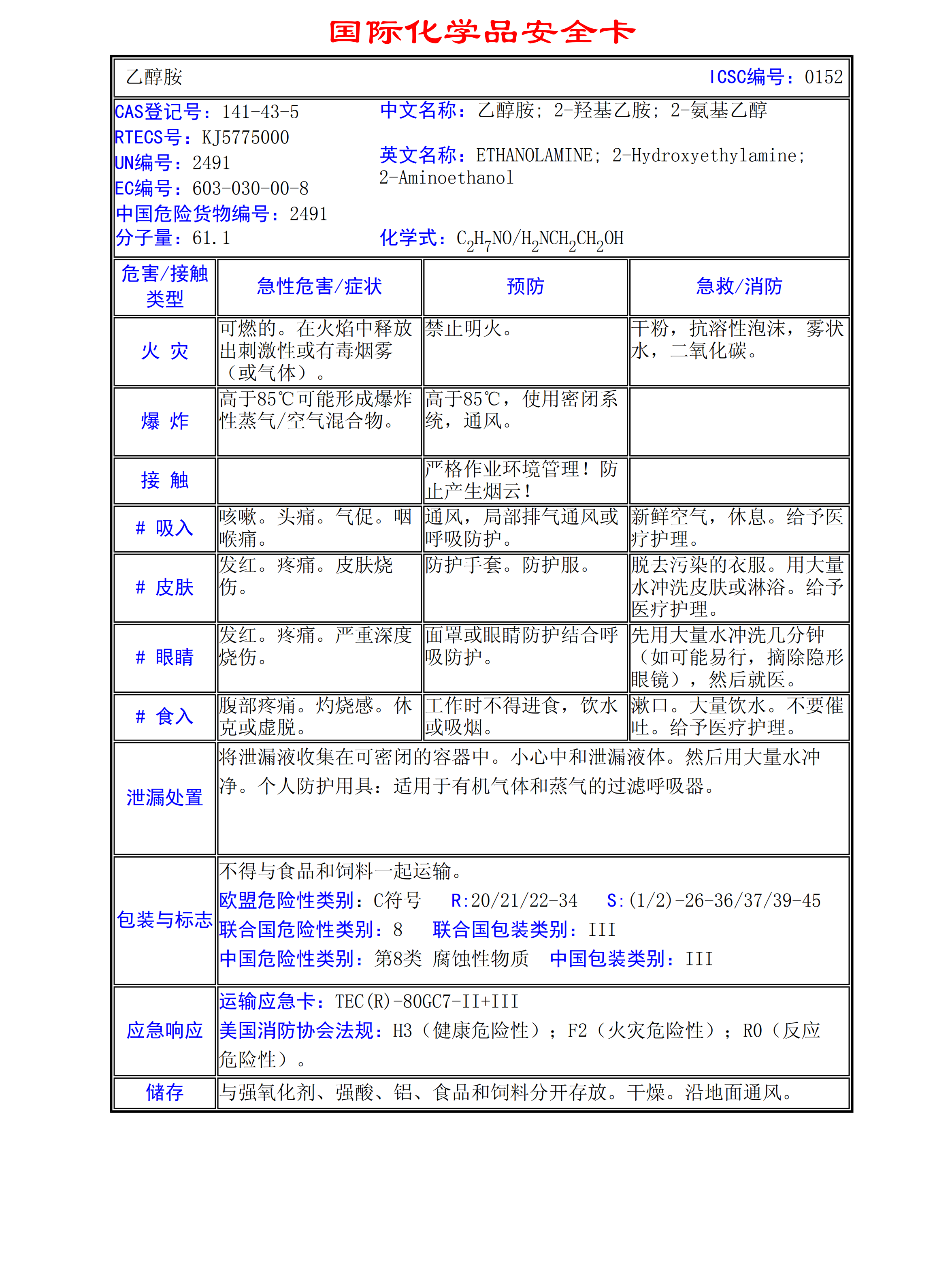 乙醇胺MSDS