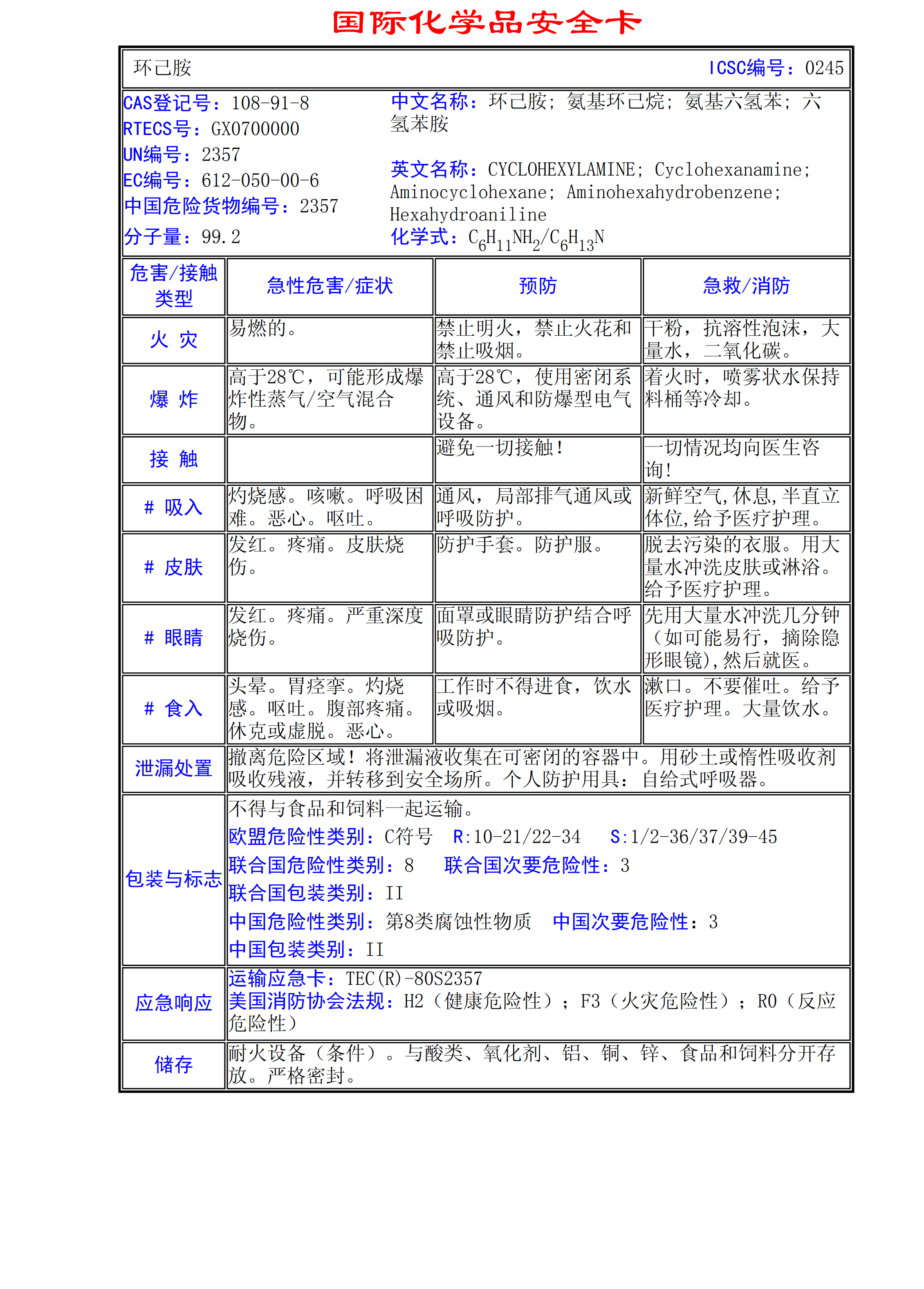 環(huán)己胺MSDS
