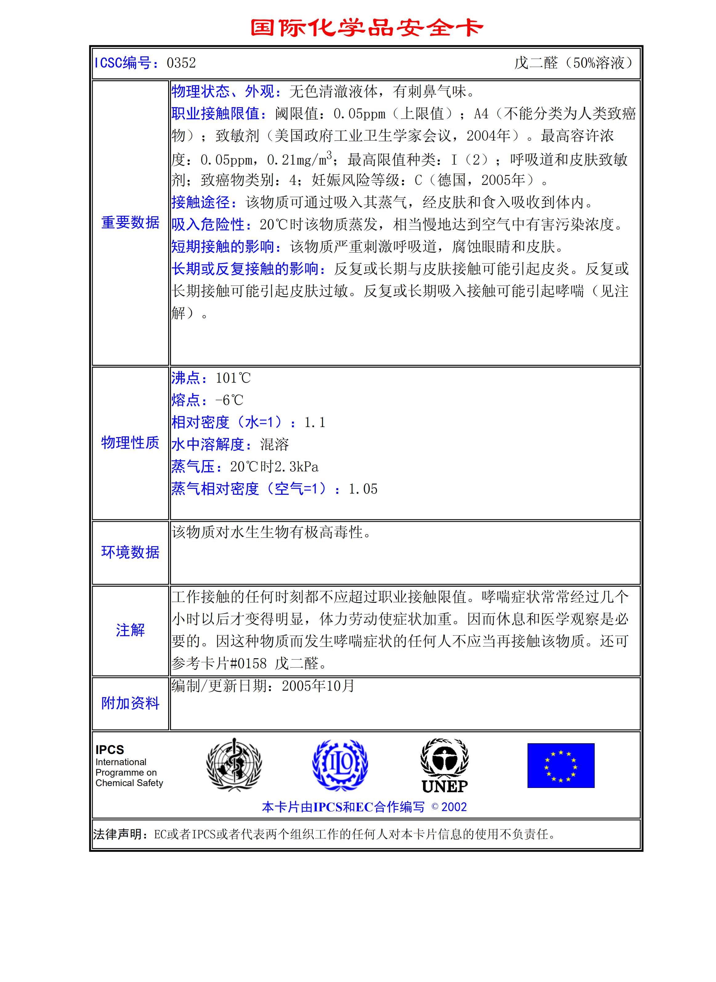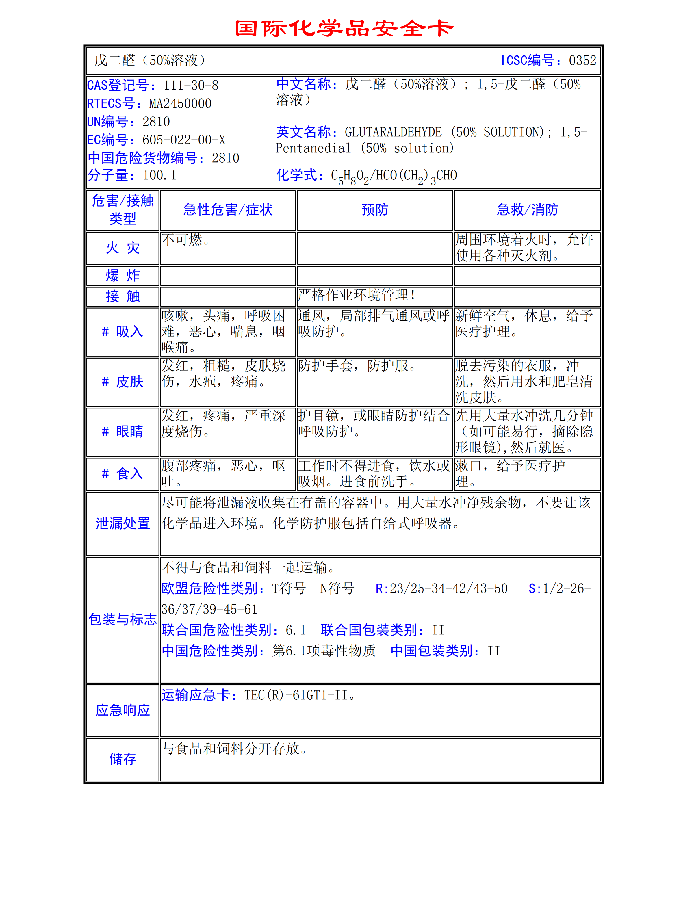 戊二醛(50溶液)MSDS