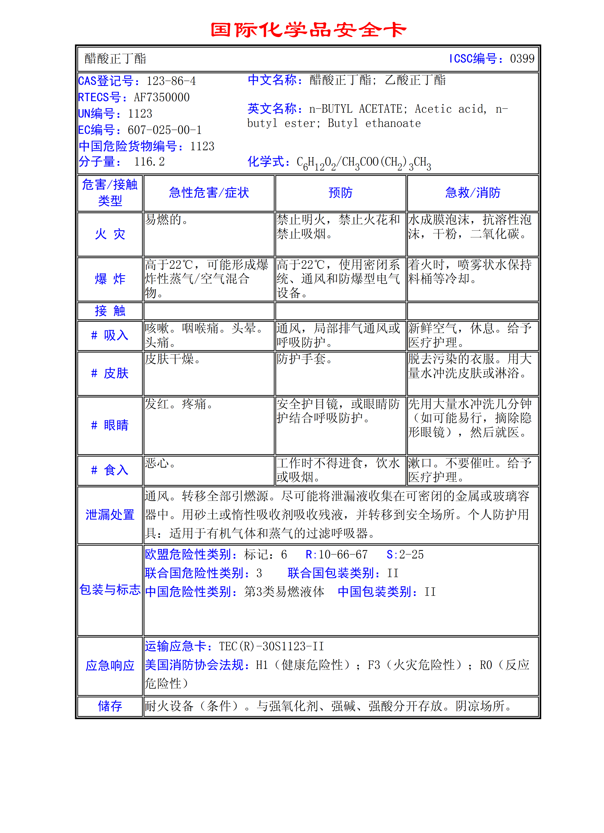 醋酸正丁酯MSDS