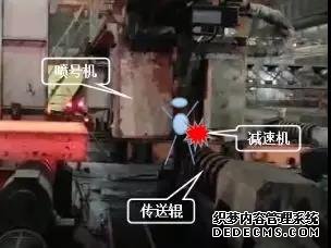 2020年2月4日,某鋼企某公司煉鋼廠設備乙班運保作業(yè)區(qū)連鑄機維護班組接3#連鑄機切割崗位電話,需要處理5流噴號機故障。劉某某、唐某趕至現(xiàn)場與崗位工確認,并將5流噴號機操作開關打至“就地”模式進行處理。21:20,故障處理完畢后,劉某某將操作開關選至“遠程”模式,交付給切割崗位工使用。劉某某在返回值班室途中,認為5流噴號機噴絲數(shù)量不夠,與當時在毛刺機區(qū)域巡檢的李某某一起返回,重新進入現(xiàn)場進行確認。此時噴號機由西向東自動運行,將劉某某壓在36#傳送輥電機減速機之間,急送醫(yī)院救治,經(jīng)搶救無效死亡。