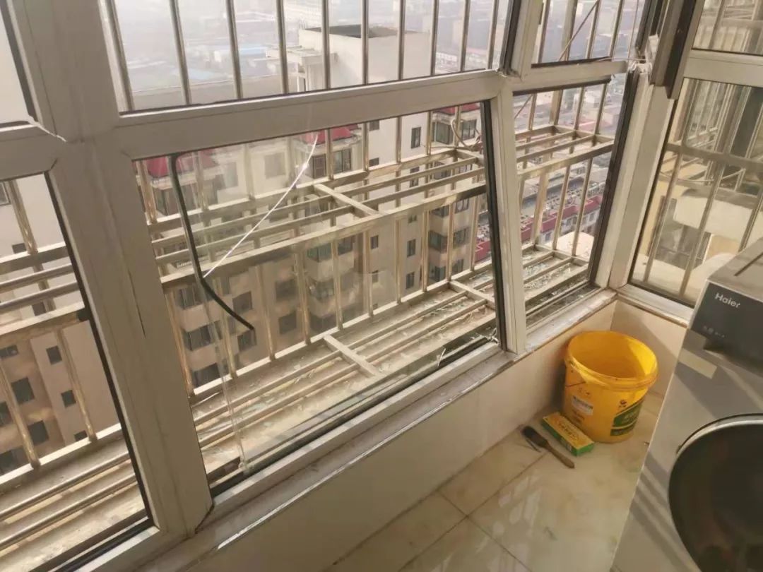 這是贊皇縣翰林官邸小區(qū)11號(hào)樓前監(jiān)控視頻拍攝的畫面。從監(jiān)控上看,樓上住戶玻璃破損有大量碎玻璃掉落到樓下。記者了解到這些碎玻璃是從這棟樓21層一戶掉落下來的。之后,記者來到這家住戶屋內(nèi)。