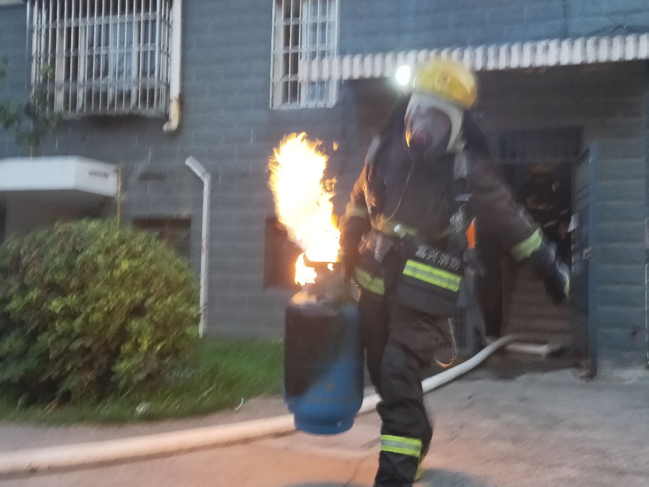 到達現(xiàn)場消防指戰(zhàn)員發(fā)現(xiàn),著火處物為煤氣罐,該煤氣罐位于居民房內(nèi)廚房里,處于猛烈燃燒階段,隨時都有爆炸的可能,而且居民樓樓下都住有居民,一旦發(fā)生爆炸,后果不堪設(shè)想。