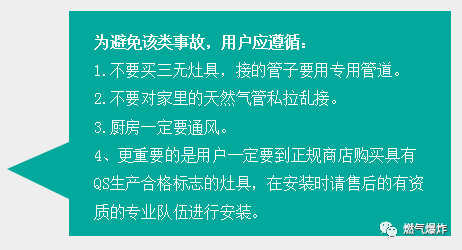 2012年7月27日重慶奉節(jié)縣一居民家發(fā)生天然氣意外泄漏事故,發(fā)生事故的居民家中所有家具和電器都被燒毀,窗戶的玻璃已被震爛。爆炸造成一家6人燒傷,最終一人搶救無效死亡。據(jù)網(wǎng)上報道爆炸是由于天然氣管道與輸氣軟管之間存在縫隙,導致天然氣泄漏引發(fā)的。在該戶家中,發(fā)現(xiàn)新買的燃氣灶具,是個三無產品。該戶的燃氣管道,是由兩根軟管接起來的,一根軟管不夠長,中間還用一根硬塑料管連了起來,還使用了膠水來粘接,這是非常危險的作法,連接的塑料管是硬的,天然氣完全可能因連接處泄漏出來。也許是用戶點了火,也許只是開了某一種電器的開關,就引起了天然氣爆炸,隨后的火焰擴散,屋內東西全部燒毀。