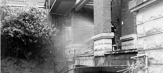 消火栓取水時(shí),新的問題出現(xiàn)了?!跋浪ㄔ谝惶幓趬Ω浇?,出水口緊貼著墻面,根本就沒辦法用?!睘榱瞬坏⒄`救援工作,消防官兵立即用器材對(duì)消火栓周邊墻壁進(jìn)行處置,留出足夠的空間供水帶取水。