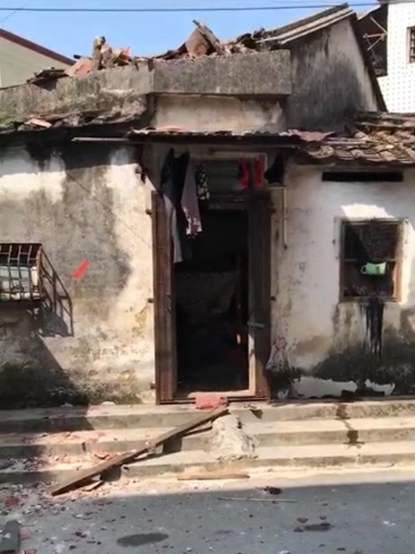 從網(wǎng)友提供的事故現(xiàn)場視頻中我們可以看到,該棟民宅的屋頂嚴重受損,大面積的瓦片被炸飛,掉落在大門口附近。